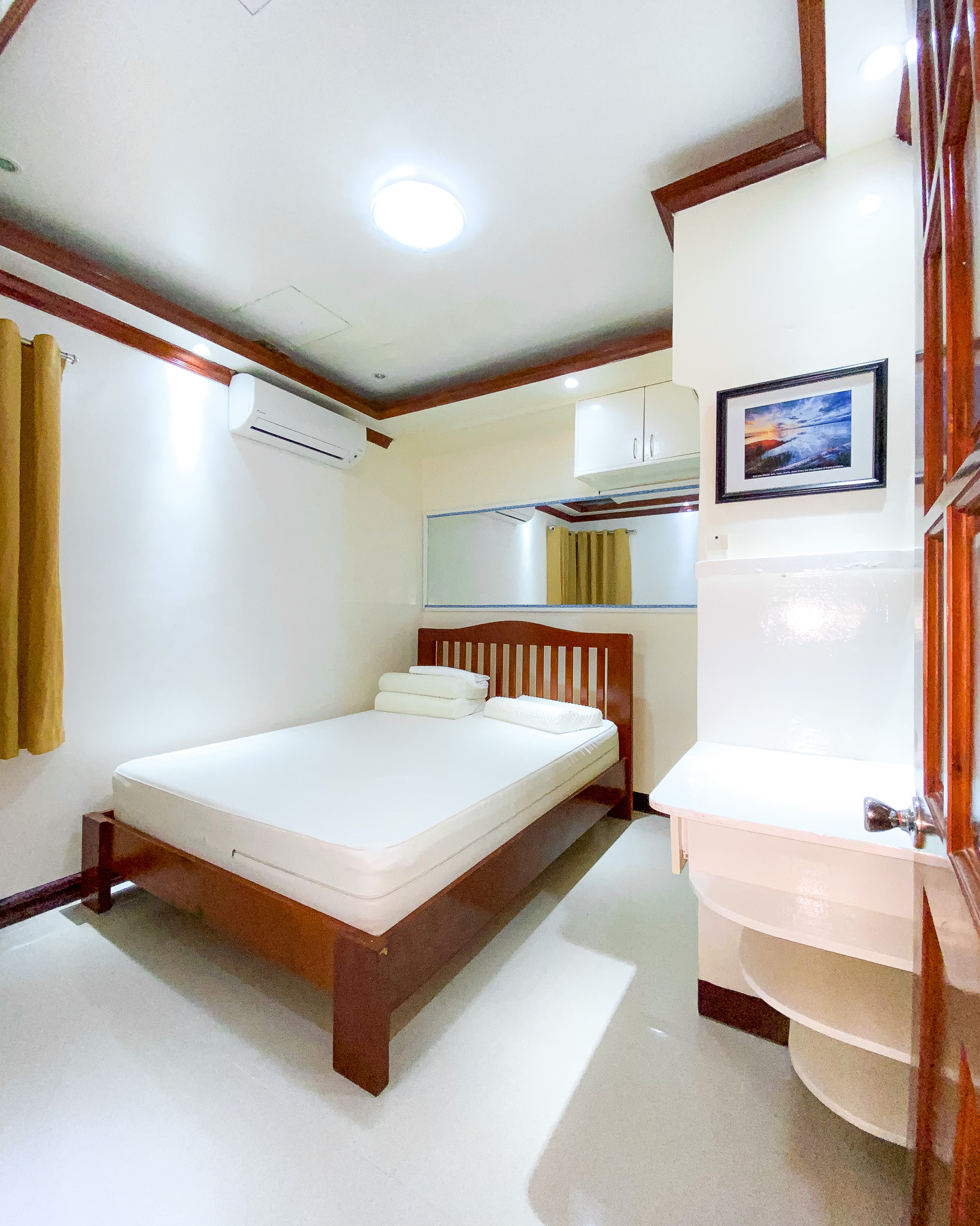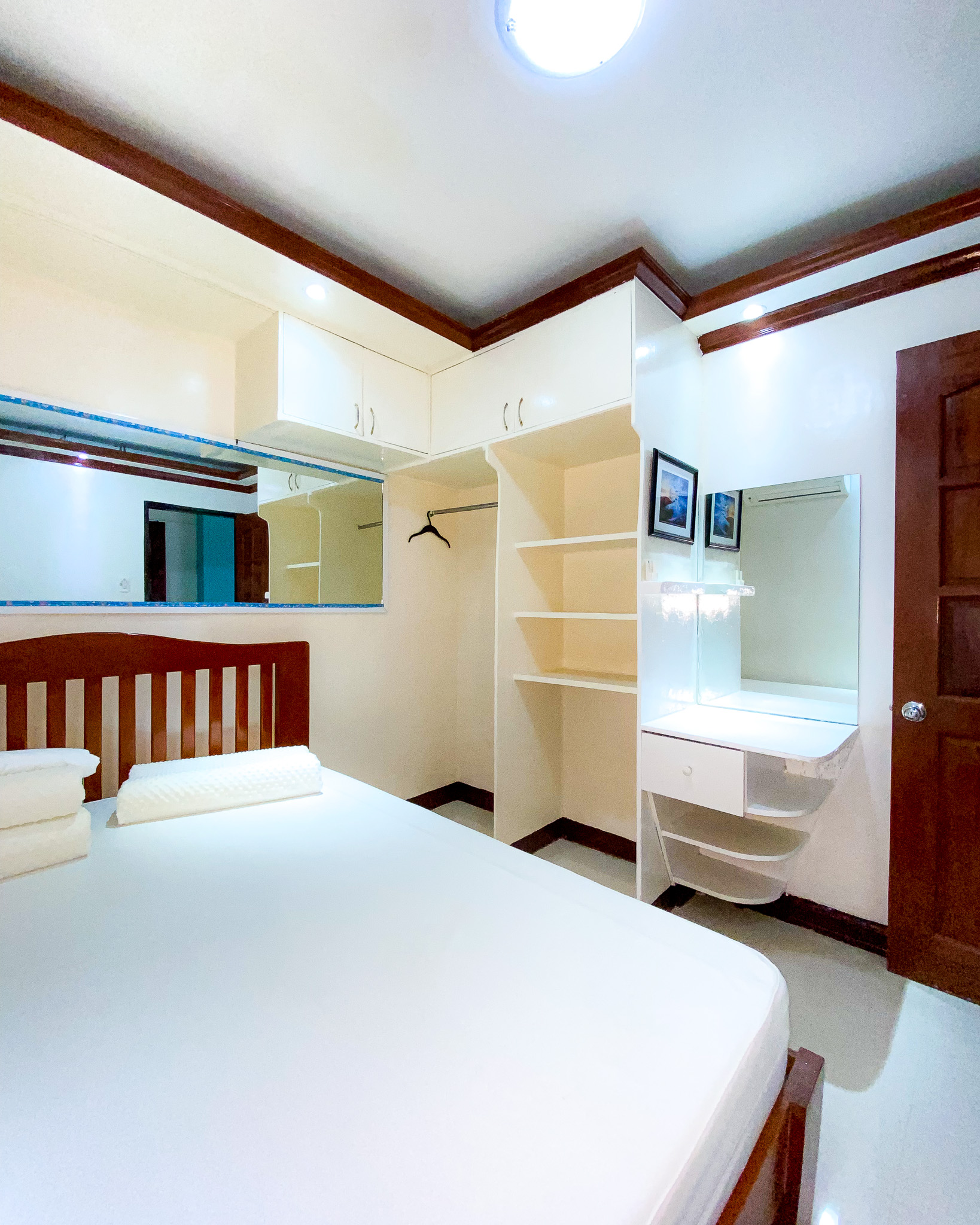 Each unit is equipped with top-of-the-line amenities to ensure your utmost comfort and convenience. The 3 split type inverter aircons, 1-door inverter refrigerator, microwave oven, 2 queen size beds, 1 single size bed, sofa bed, dining table set, 4 burner stove oven cooker, range hood, rice cooker, water dispenser, rotating ceiling fan, accessible relaxing roof deck, screened door to balcony, 1 smart TV, huge mirrors, uninterrupted water supply, and unlimited fibre internet are all included in the package.
