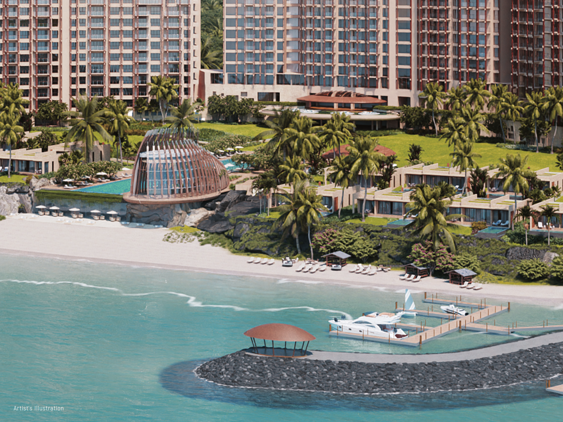 The property’s open areas are adorned with manicured gardens, keeping the area cool and energizing. The hotel and residential areas are seamlessly integrated, bringing the best experience for guests and homeowners alike. Immerse yourself in peace, and retreat into its unique, tropical bliss.