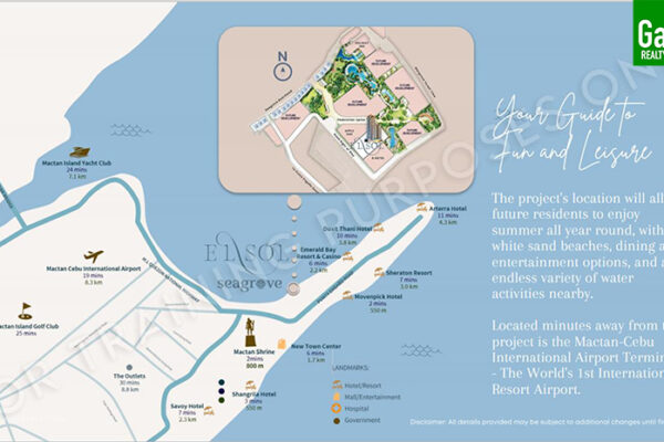 El Sol Cebu, located within the Seagrove Estate, represents a rare opportunity to invest in luxury living in the heart of Cebu’s premier beach resort area. With its prime location, proximity to the airport, and connection to the vibrant Seagrove community, El Sol promises a life of convenience, relaxation, and endless leisure. Don’t miss out on this chance to make El Sol your home in paradise.