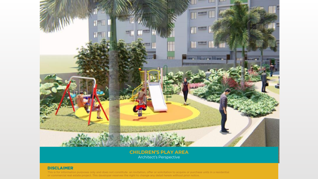 The resort-themed amenity area includes an adult swimming pool, kiddie pool, two-storey fitness gym, children’s play area, multi-function halls, clubhouse, and a 24/7 CCTV system. Each building has three elevators and garbage rooms per floor. The property also boasts a retail bloc with a supermarket, retail stores, and 65 parking slots. Additionally, it has property management services and 100% back-up power.