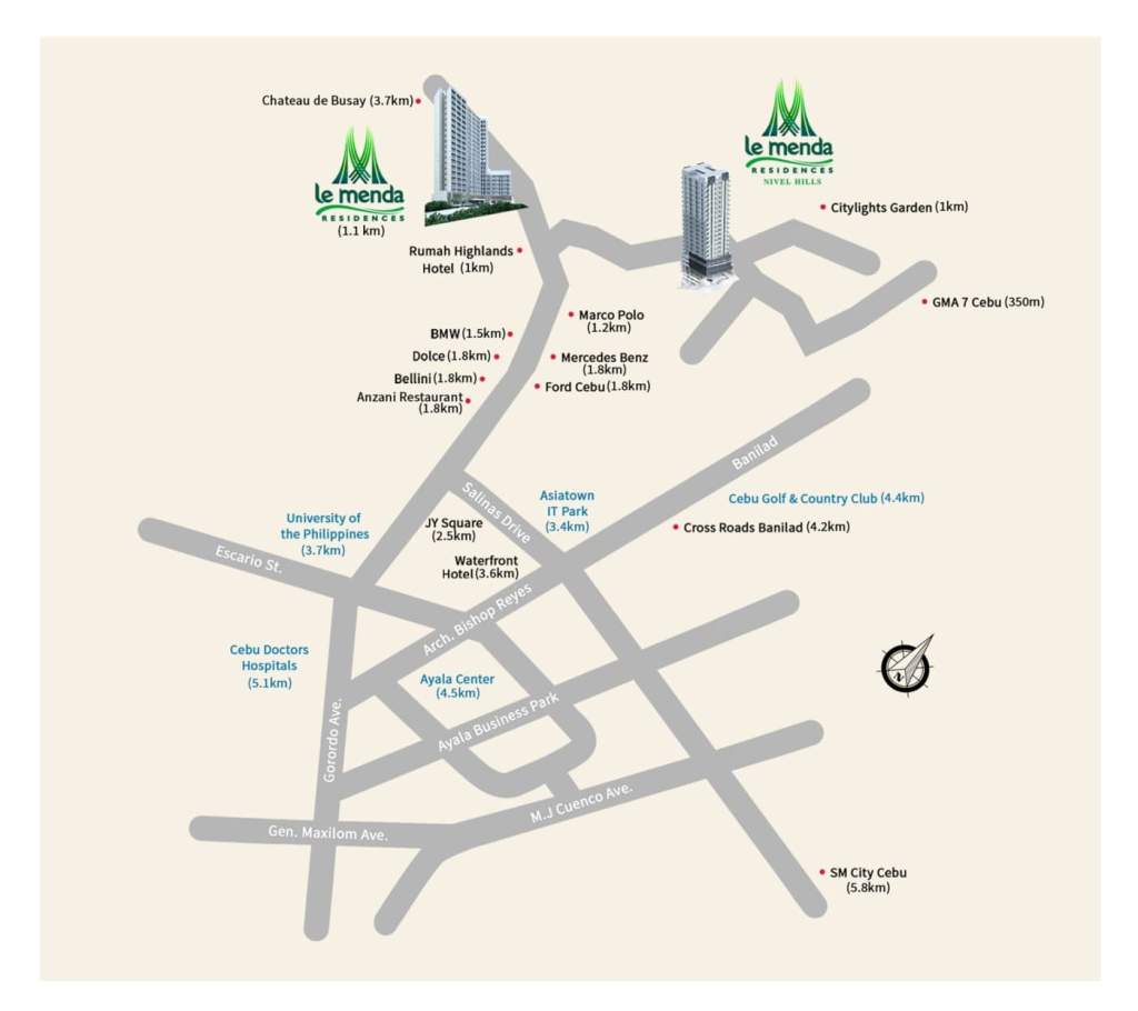 Le Menda Residences Nivel, Cebu’s prestigious residential development, is your gateway to a lifestyle marked by elegance and convenience. It’s not just a residence; it’s your own luxurious retreat above the city, offering peace without sacrificing accessibility. Enjoy the convenience of living just 6 minutes from Lahug, ensuring you are never far from the city’s vibrant life.