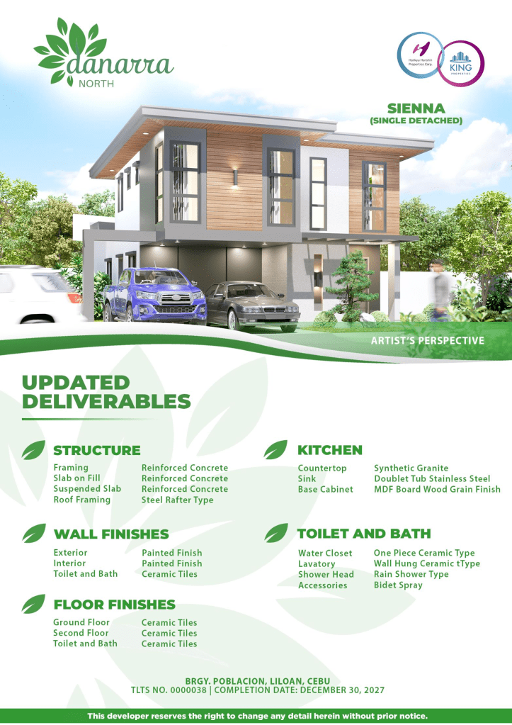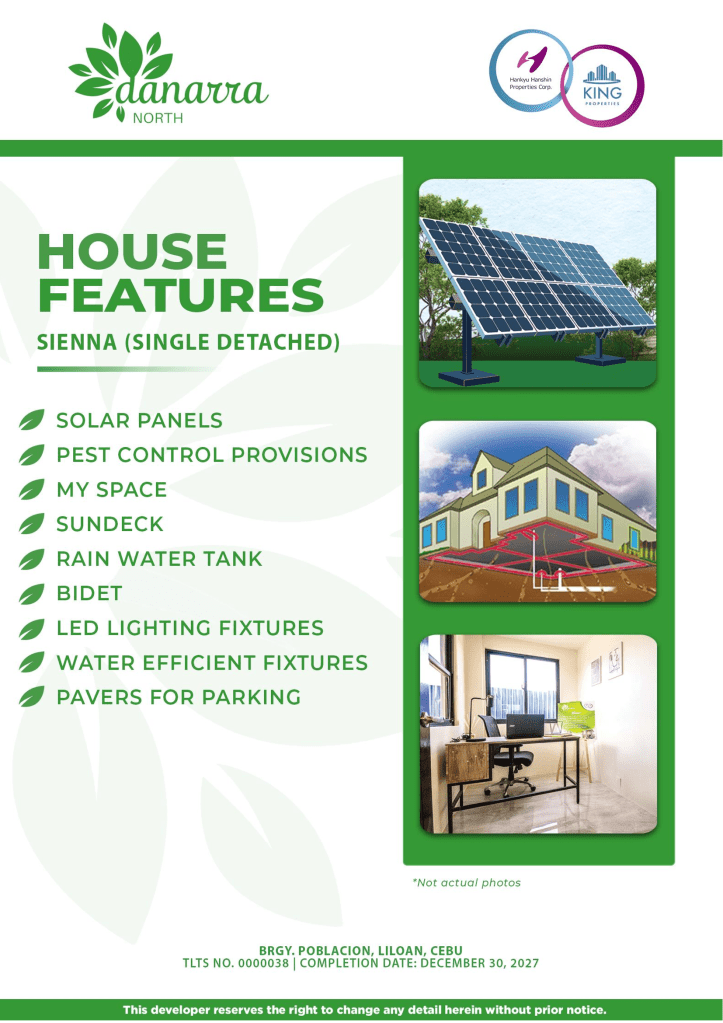 Live green in luxury. The Sienna Single Detached Unit at Danarra North is the perfect blend of comfort, sustainability, and elegant designโcrafted by King Properties in partnership with Hankyu Hanshin Properties Corp. This is Liloanโs first sustainable residential development, located in a highly accessible neighborhood just minutes from the national highway and urban essentials.